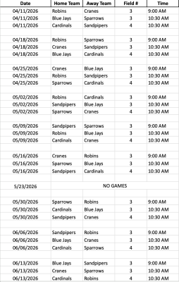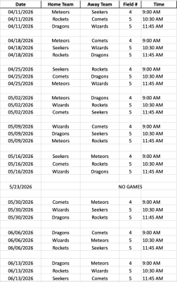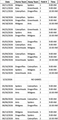 Spring 2026 In-Town Game Schedule